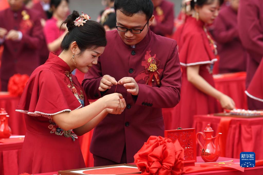 9月27日,新人們在集體婚禮儀式現場(chǎng)。