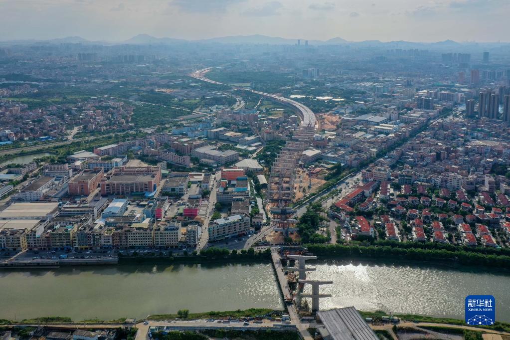 莞番高速貫穿東莞市十個(gè)鎮區,大量采用雙層橋設計有效節約建設用地(9月27日攝,無(wú)人機照片)。