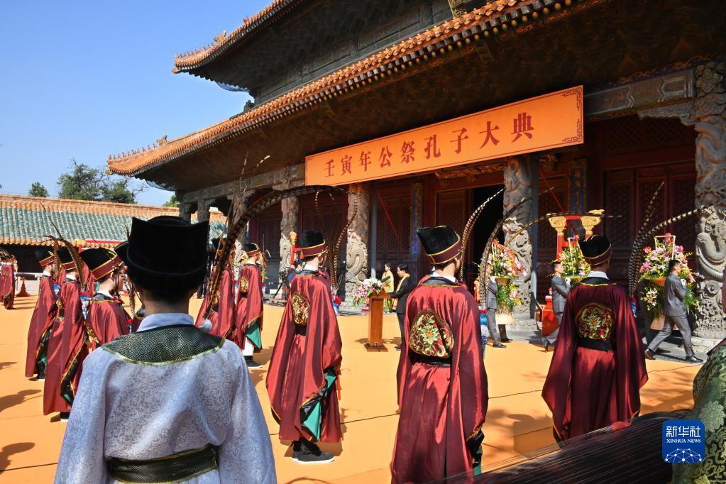 當日,山東曲阜舉行壬寅年祭孔大典,紀念孔子誕辰2573年。