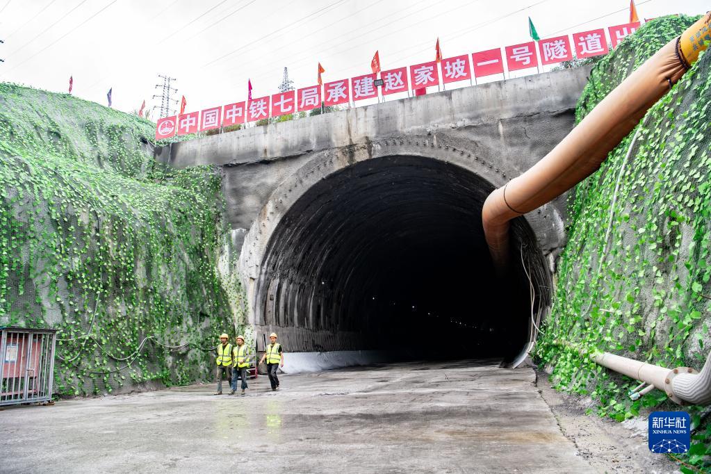 9月28日,工作人員從渝湘高鐵重慶段趙家坡一號隧道出口走出。