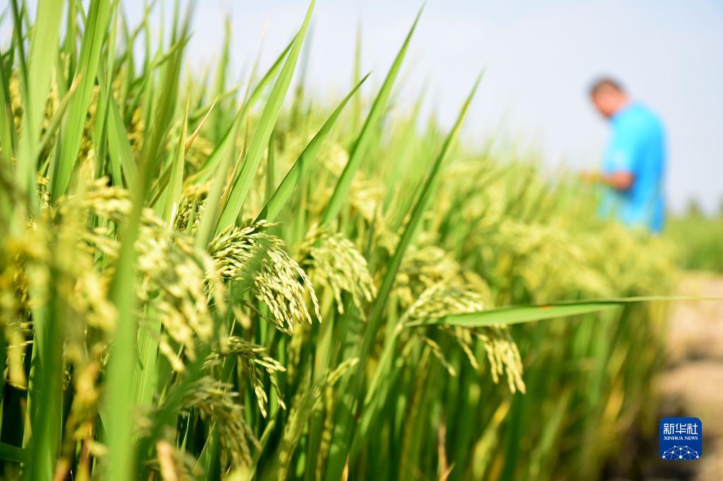 9月26日,農民在安徽省合肥市長(cháng)豐縣崗集鎮牛寨村淮西現代農業(yè)示范園節水抗旱稻試驗基地參觀(guān)節水抗旱稻。