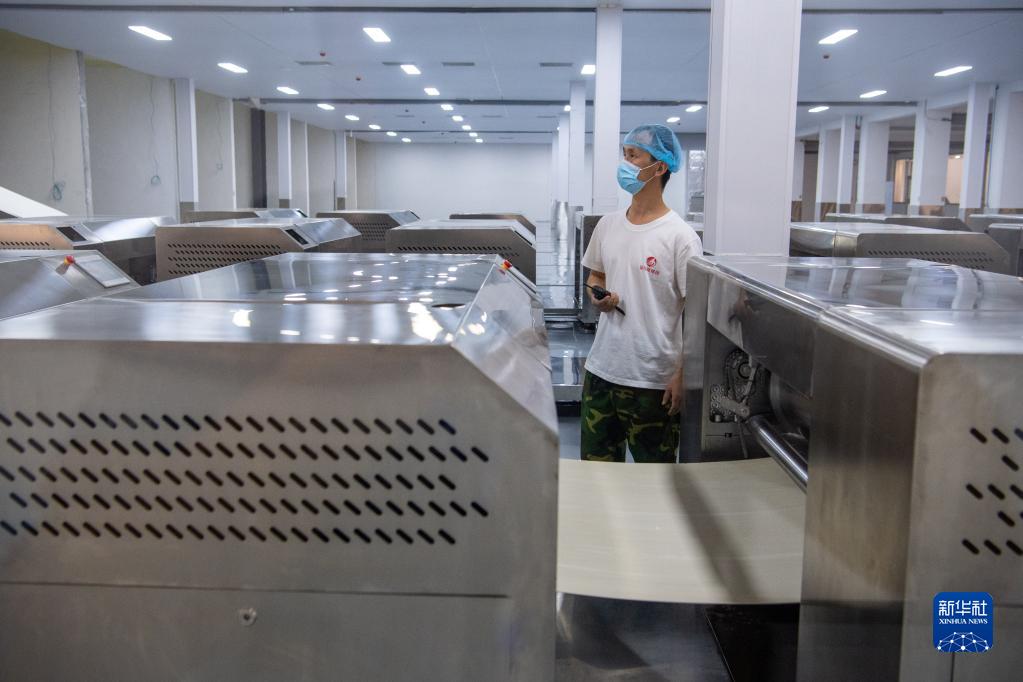 9月29日,在位于重慶忠縣新生港的重慶金沙河面業(yè)生產(chǎn)車(chē)間,工作人員在生產(chǎn)線(xiàn)上監測自動(dòng)化設備運行情況。
