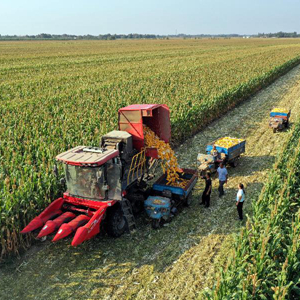 當日,山東德州樂(lè )陵市“噸半糧”核心區玉米開(kāi)始收割,農戶(hù)運用大馬力收割機、翻耕機等現代化農機裝備進(jìn)行勞作,田間地頭一派繁忙秋收景象。