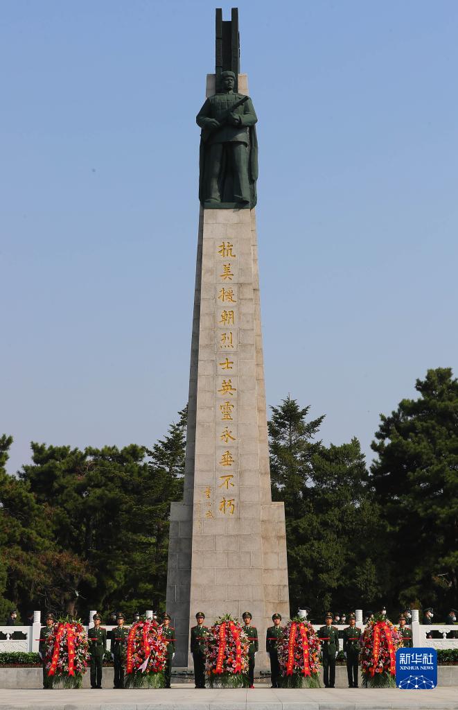 9月30日,遼寧省暨沈陽(yáng)市向烈士紀念碑敬獻花籃儀式在沈陽(yáng)抗美援朝烈士陵園紀念碑廣場(chǎng)舉行。