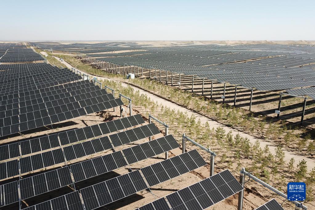 新華全媒+丨立體光伏治沙產(chǎn)業(yè)化項目繪就騰格里沙漠“生態(tài)綠”