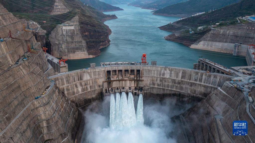 這是2022年5月29日拍攝的白鶴灘水電站一景(無(wú)人機照片)。