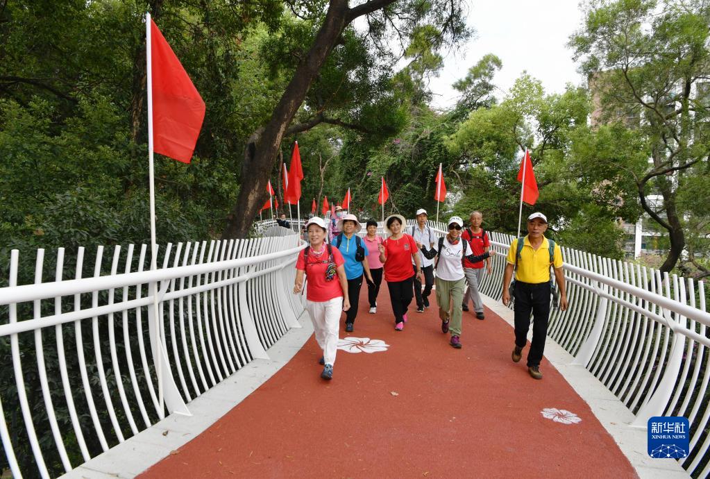 10月1日,在福建省福州市,市民在新開(kāi)放的金雞山公園茉莉花生態(tài)廊道游玩。