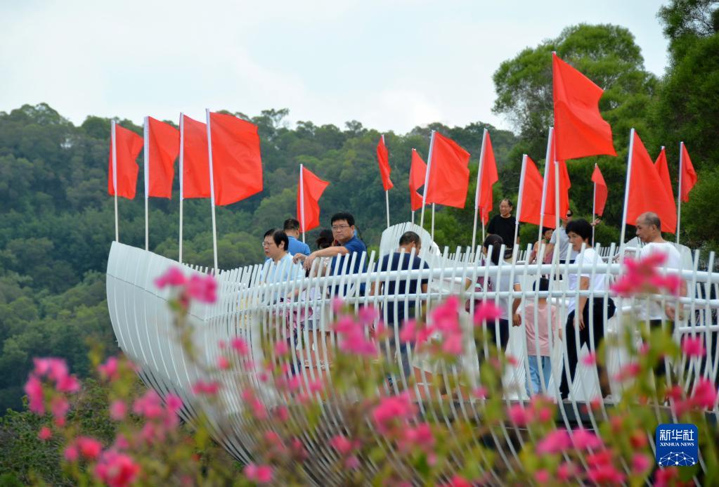 10月1日,在福建省福州市,市民在新開(kāi)放的金雞山公園茉莉花生態(tài)廊道游玩。