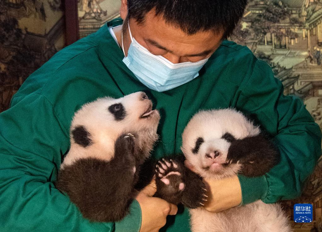 當日,在重慶動(dòng)物園大熊貓館,7月22日出生的雙胞胎大熊貓幼仔與游客首次見(jiàn)面,這對雙胞胎兄妹目前健康狀況良好。它們的母親“二順”曾作為友好使者,從2013年3月起旅居加拿大多倫多動(dòng)物園和卡爾加里動(dòng)物園,2020年11月底回國,今年3月在中國大熊貓保護研究中心與大熊貓“青青”完成自然交配。