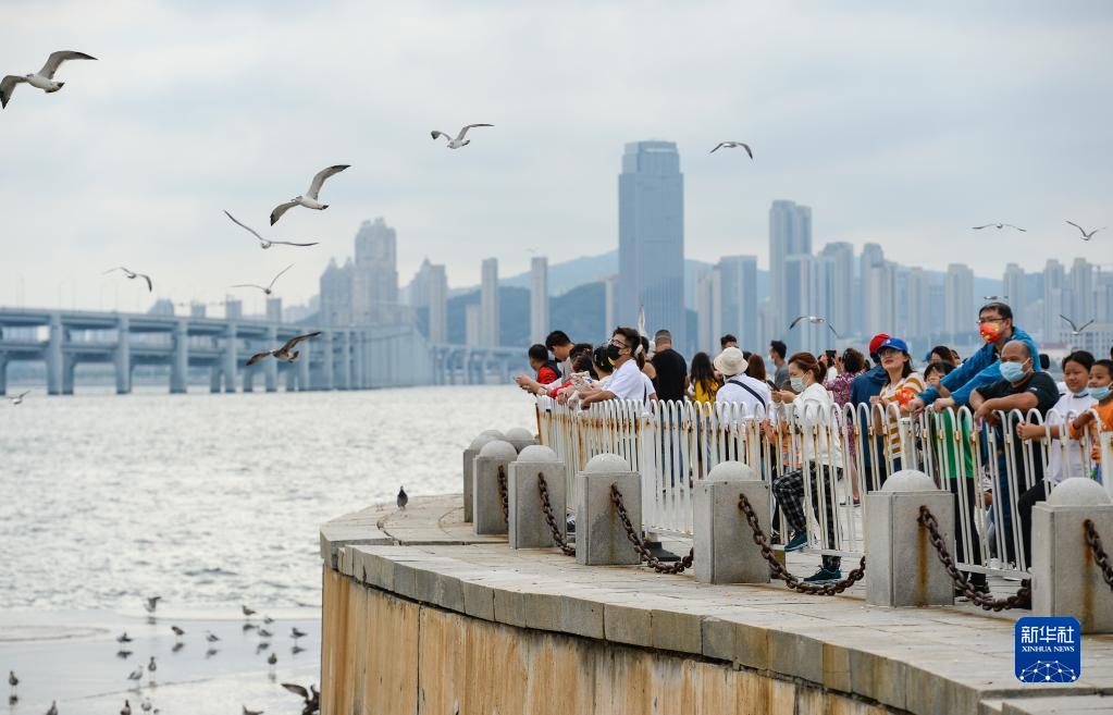 10月1日,在遼寧省大連市,市民在星海廣場(chǎng)游玩。
