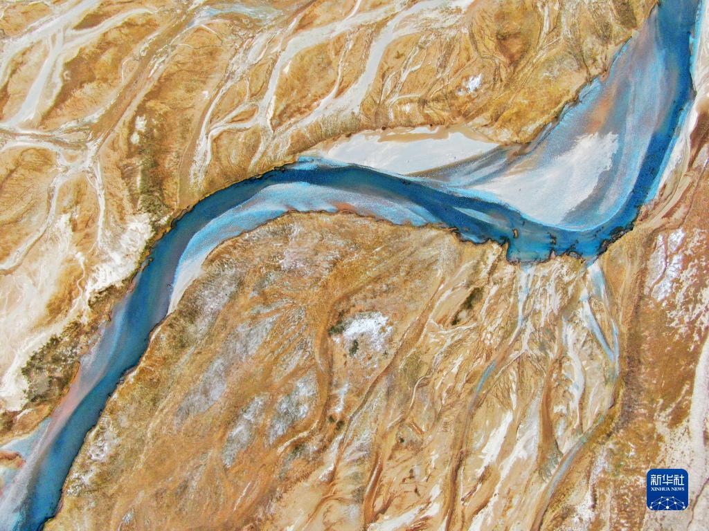 9月24日在哈爾騰草原拍攝的大哈爾騰河(無(wú)人機照片)。