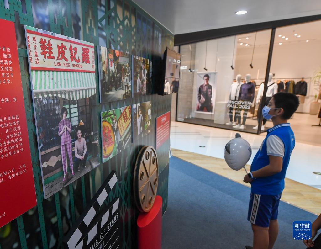 10月1日,兒童在“再遇@香港”展覽上了解香港電影。