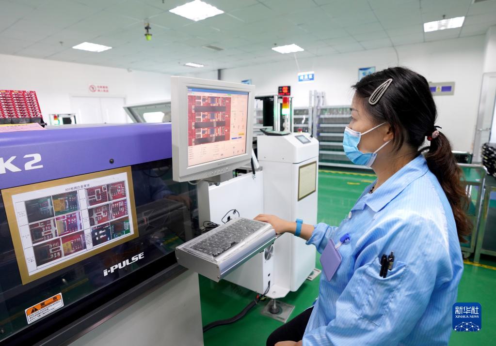 9月30日,山東省德州市天衢新區一家電子科技企業(yè),員工在操作設備。
