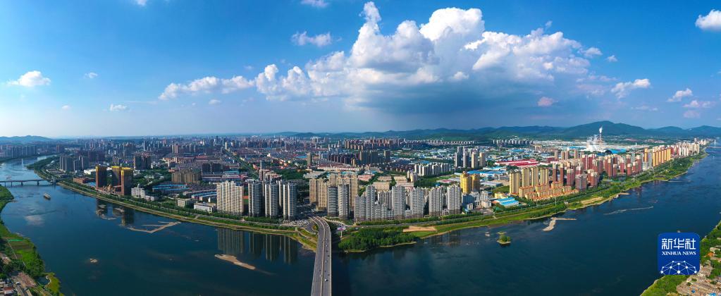 這是2022年6月18日拍攝的松花江畔的吉林市城區景象(無(wú)人機照片)。