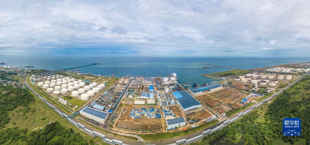 在海南洋浦經(jīng)濟開(kāi)發(fā)區拍攝的石化功能區(無(wú)人機全景照片,10月1日攝)。