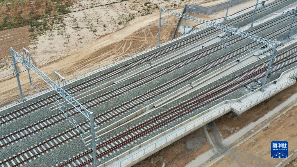 這是完成接觸網(wǎng)送電的銀蘭高鐵甘肅段線(xiàn)路(10月2日攝,無(wú)人機照片)。