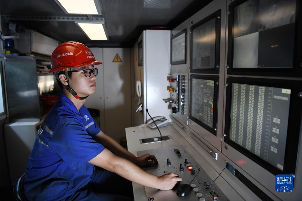 10月3日,盾構機駕駛員在蕪湖城南過(guò)江隧道施工現場(chǎng)作業(yè)。
