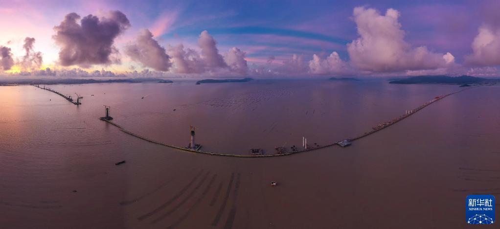 中鐵大橋局和中交路建承建的黃茅??绾Mǖ溃?022年6月28日攝,無(wú)人機照片)。黃茅??绾Mǖ罇|起珠海市平沙鎮,西接江門(mén)市斗山鎮,橫跨珠江口崖門(mén)入??邳S茅海水域,線(xiàn)路全長(cháng)約31公里,預計2024年建成通車(chē)。
