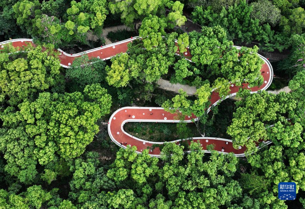 這是10月1日拍攝的福州金雞山公園茉莉花生態(tài)廊道(無(wú)人機照片)。
