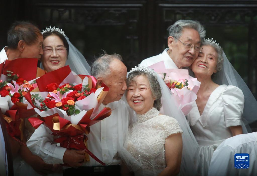 10月4日,金婚老人在江蘇省揚州市何園景區參加金婚慶典活動(dòng)。