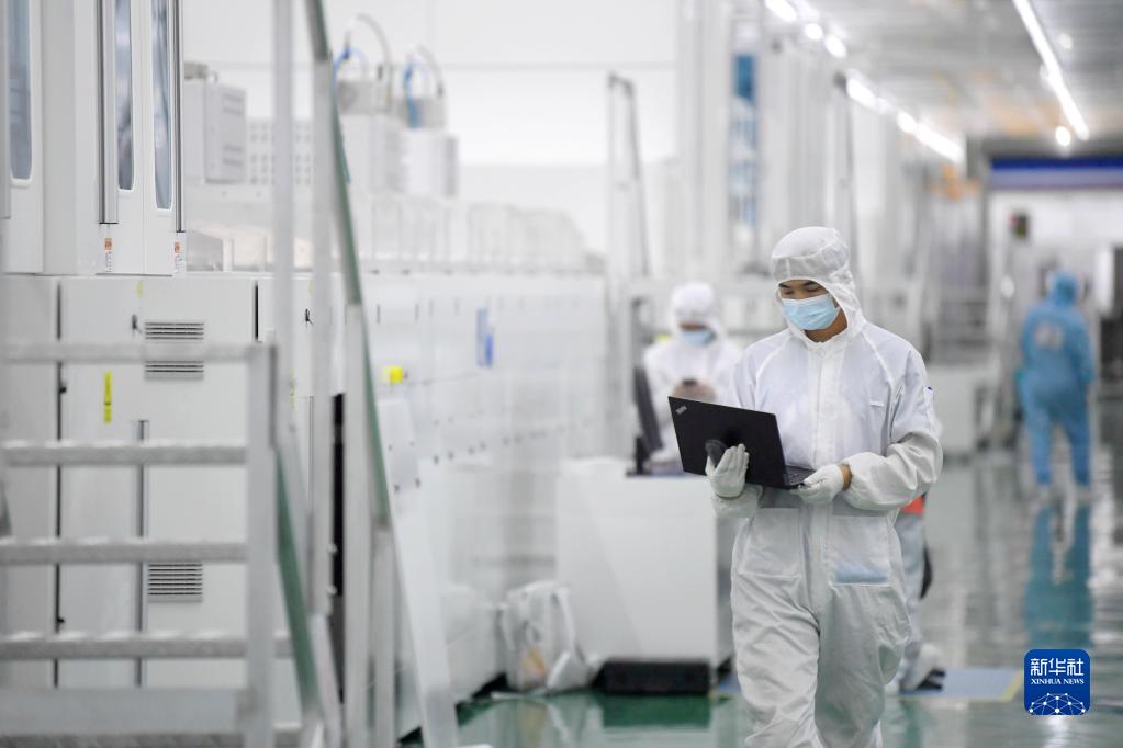 科研人員在秦創(chuàng )原光伏創(chuàng )新中心——隆基中央研究院中試線(xiàn)上工作(2022年9月23日攝)。新華社記者 李一博 攝