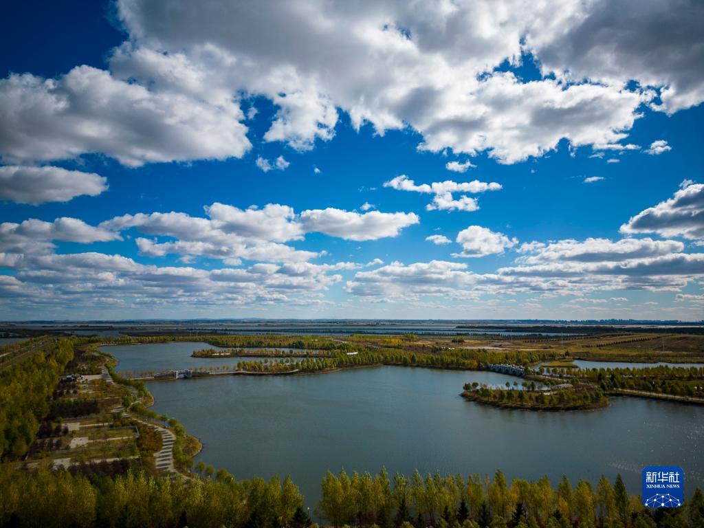 這是10月4日拍攝的呼蘭河口濕地公園內的景色(無(wú)人機照片)。