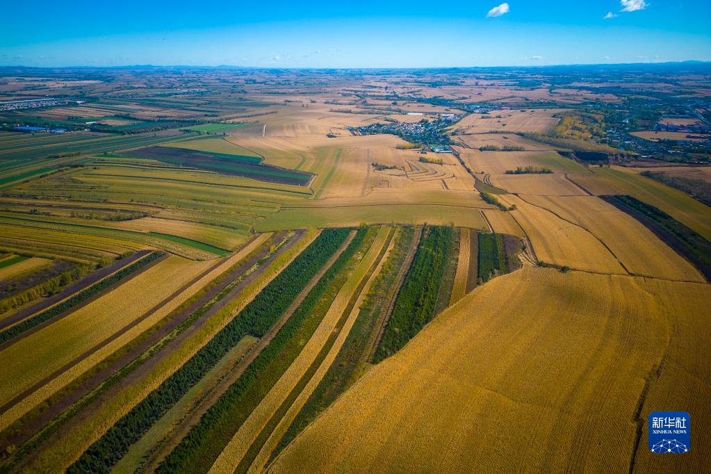 這是10月4日拍攝的哈爾濱市道外區天恒山附近的農田秋景(無(wú)人機照片)。