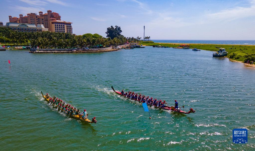 海南省瓊海市博鰲鎮在萬(wàn)泉河入??谂e行龍舟賽活動(dòng)(2022年6月3日攝,無(wú)人機照片)