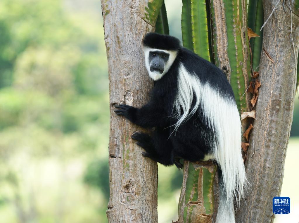 這是10月5日在肯尼亞納紐基拍攝的東非黑白疣猴。