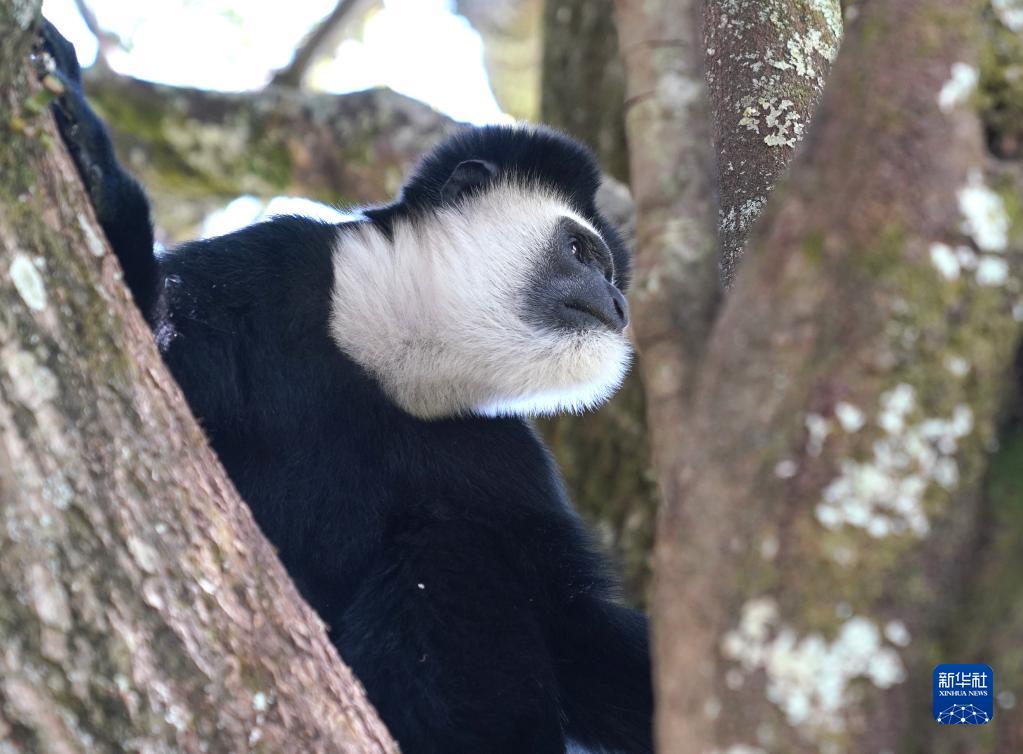 這是10月5日在肯尼亞納紐基拍攝的東非黑白疣猴。