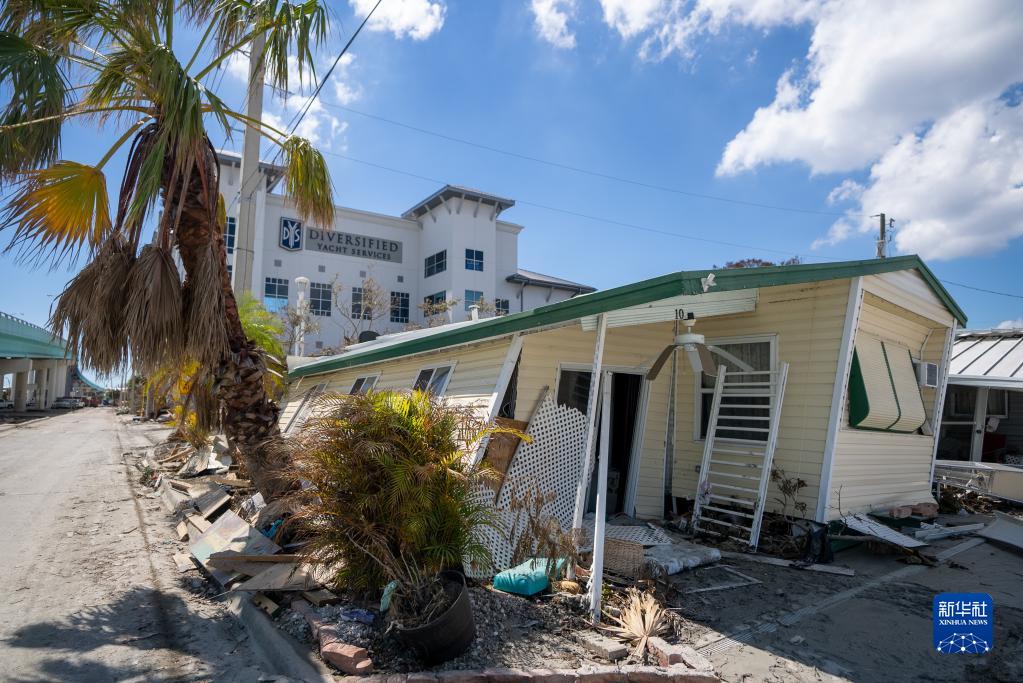 這是10月4日在美國佛羅里達州邁爾斯堡拍攝的遭颶風(fēng)“伊恩”破壞的建筑。 新華社發(fā)(羅蘭多·洛佩斯攝)
