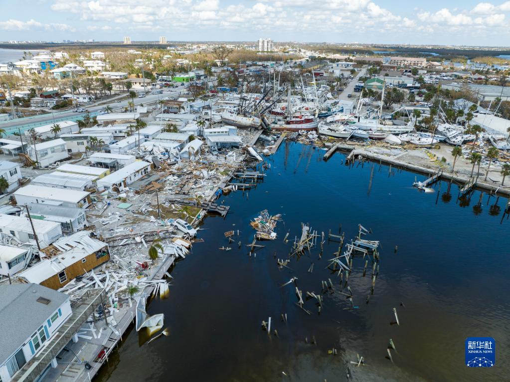 這是10月4日在美國佛羅里達州邁爾斯堡拍攝的遭颶風(fēng)“伊恩”破壞的碼頭。 新華社發(fā)(羅蘭多·洛佩斯攝)