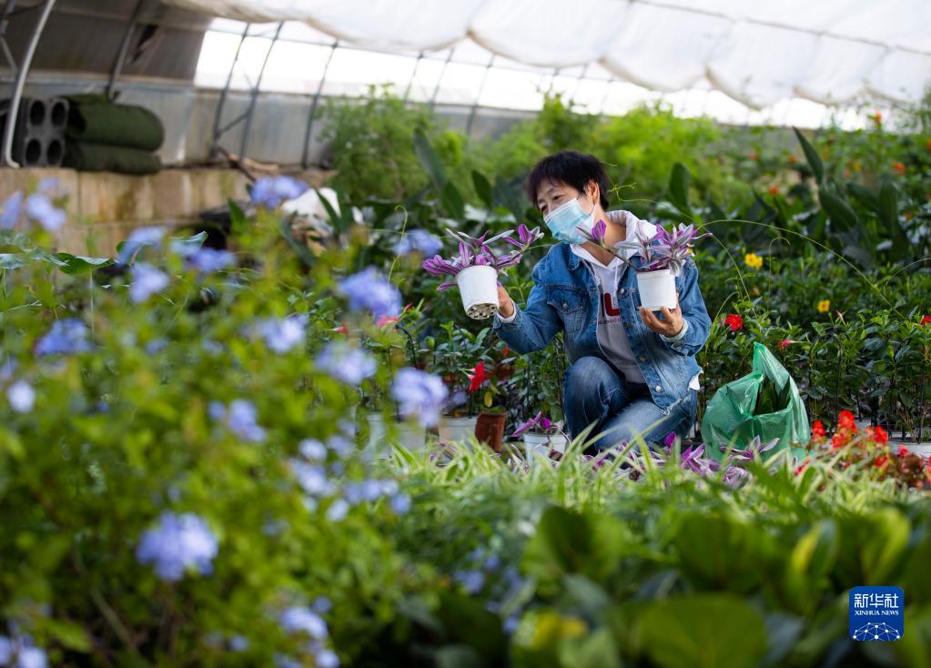 10月6日,市民在銀川市賀蘭縣寧夏豐植源花卉批發(fā)市場(chǎng)選購鮮花。