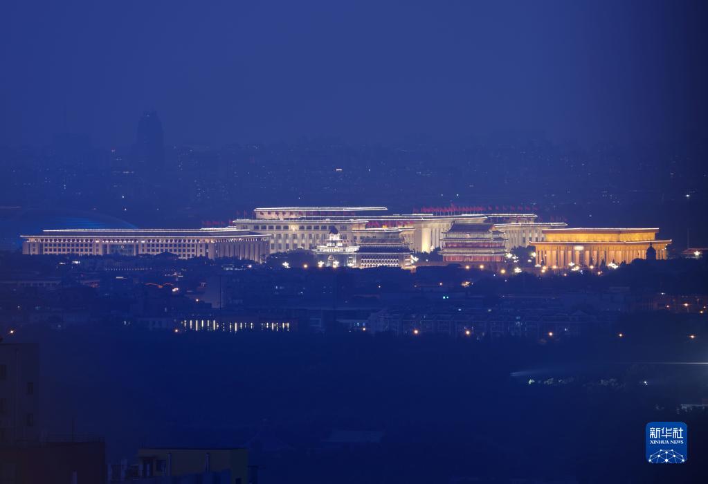 當日北京天氣晴好,夜色下,地標性建筑宏偉壯觀(guān)。