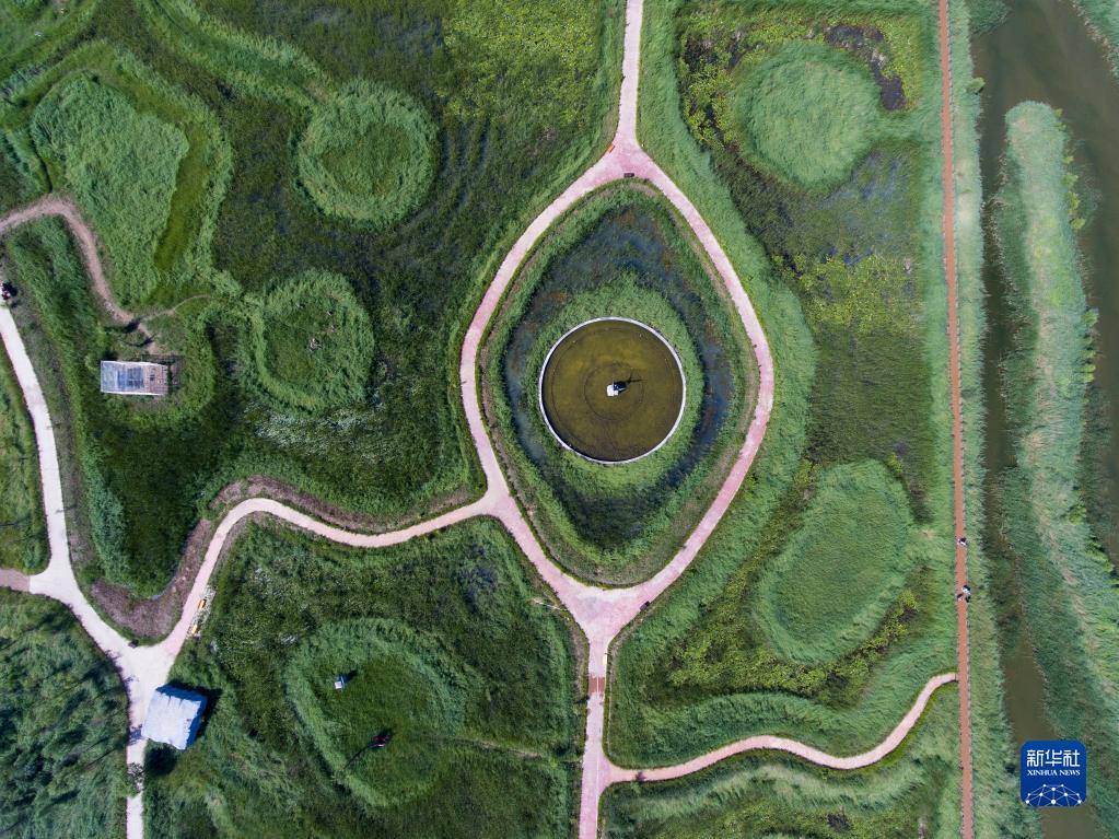 這是2022年7月28日拍攝的山西大同桑干河國家濕地公園一角(無(wú)人機照片)。