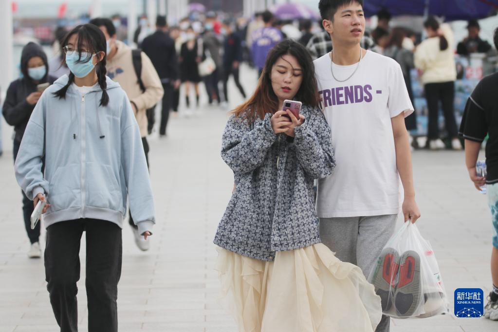 10月8日,游客在山東青島棧橋風(fēng)景區游玩。