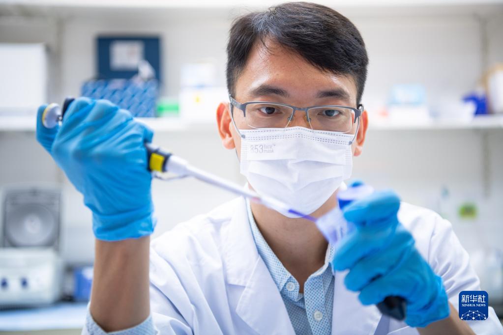 10月7日,澳門(mén)大學(xué)健康科學(xué)學(xué)院副教授周昶行在實(shí)驗室進(jìn)行液體取樣。新華社記者 張金加 攝