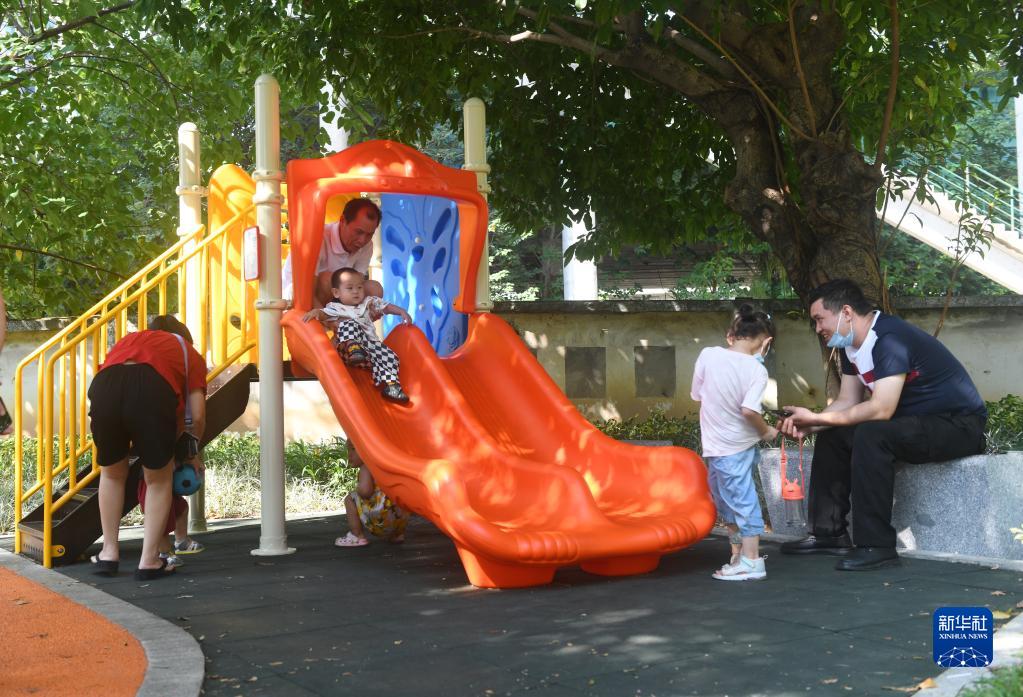 10月10日,在位于廣州市花都區的紫蘭口袋公園里,家長(cháng)帶著(zhù)孩子玩耍。