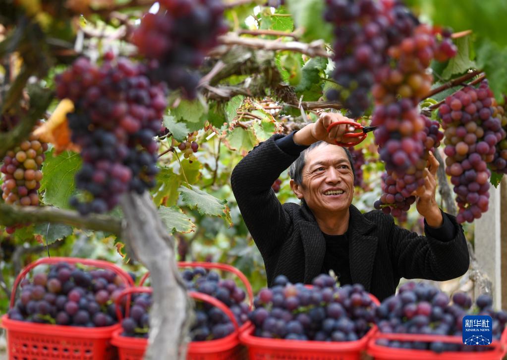 10月10日,農民在貴州省黔東南苗族侗族自治州凱里市三棵樹(shù)鎮采摘葡萄。