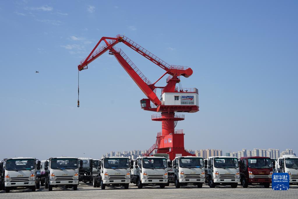 這是10月11日拍攝的安徽合肥派河國際綜合物流園港區集裝箱堆場(chǎng)。
