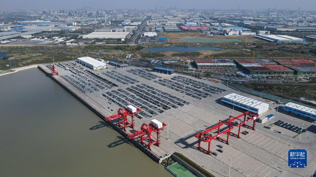 這是10月11日拍攝的安徽合肥派河國際綜合物流園港區碼頭(無(wú)人機照片)。