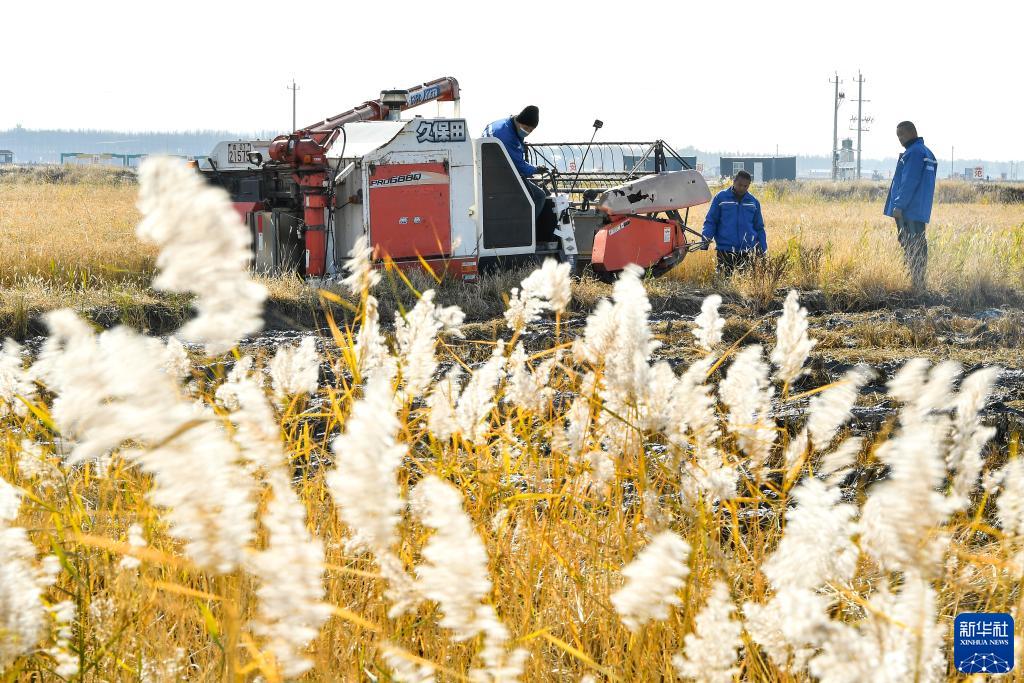 金秋十月,吉林省大安市的田野里一派豐收景象,當地農民搶農時(shí)、忙秋收,確保顆粒歸倉。