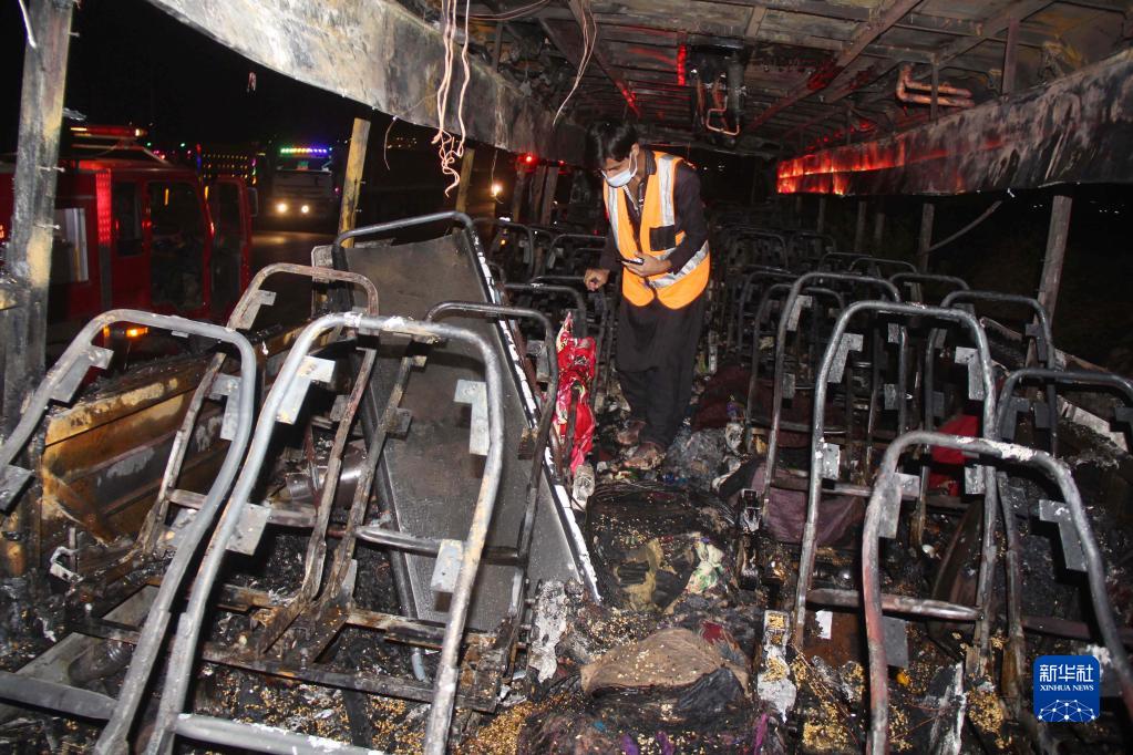 巴基斯坦南部一客車(chē)起火致18死28傷