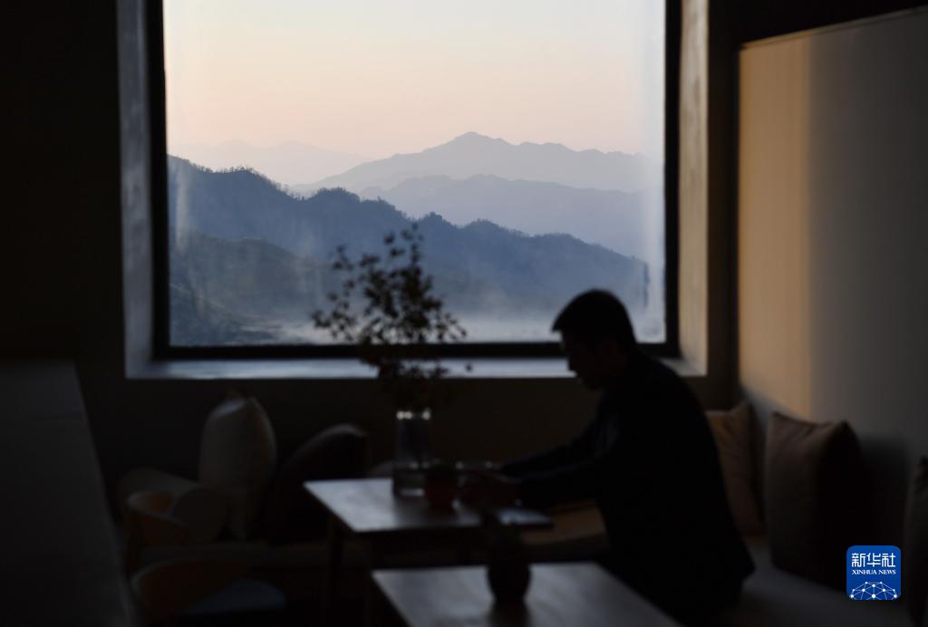 陜西紫陽(yáng)縣城關(guān)鎮青中村一間民宿窗外的景色(2021年11月24日攝)。