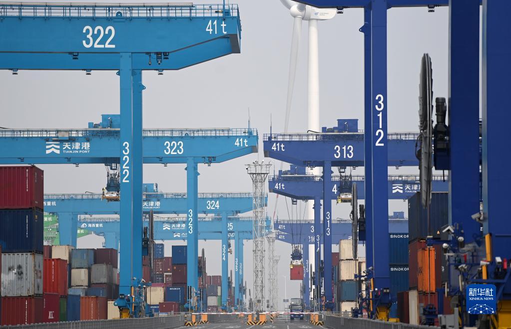 這是10月13日拍攝的天津港北疆港區C段智能化集裝箱碼頭。 新華社記者 趙子碩 攝