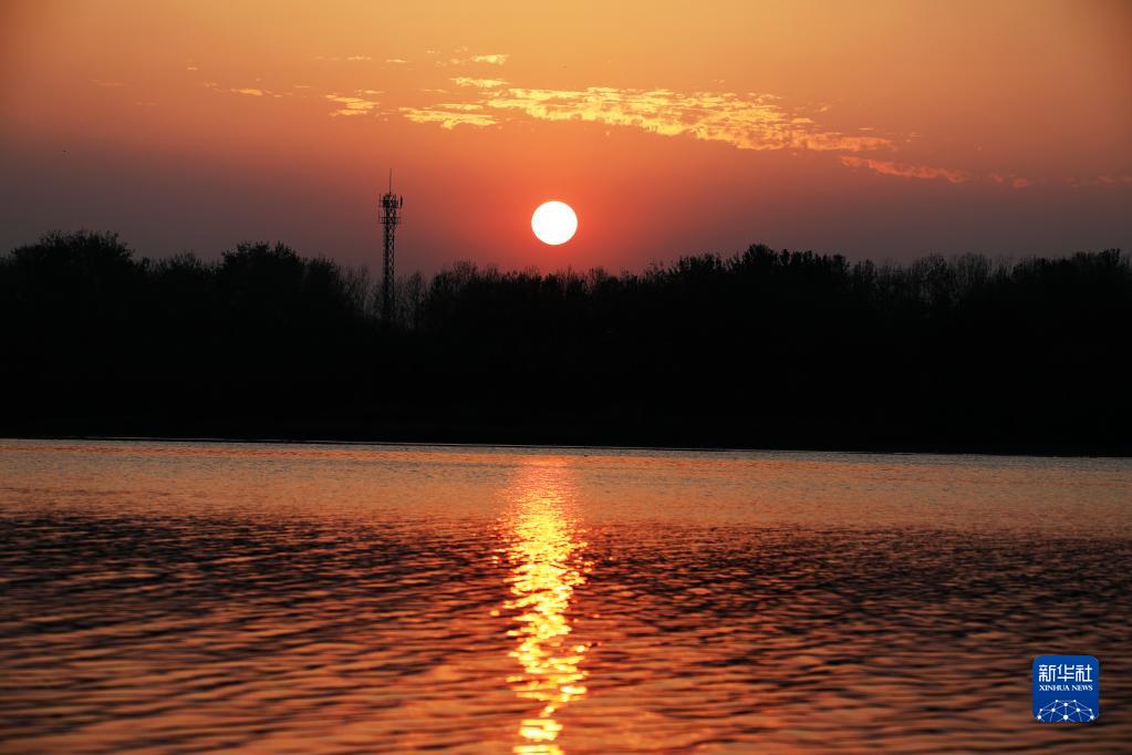 這是9月17日在山東省臨沂市郯城縣沂河畔拍攝的落日。