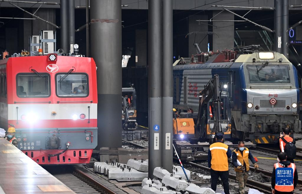 新華全媒+丨搶抓“天窗”時(shí)間 鐵路換枕用上“機器臂”