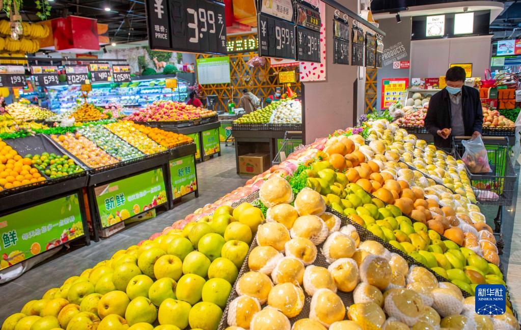 10月14日,消費者在貴州省從江縣一家超市選購水果。