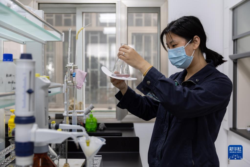 10月14日,在中央儲備糧上海直屬庫檢測中心,徐燁進(jìn)行稻谷的脂肪酸值滴定實(shí)驗。