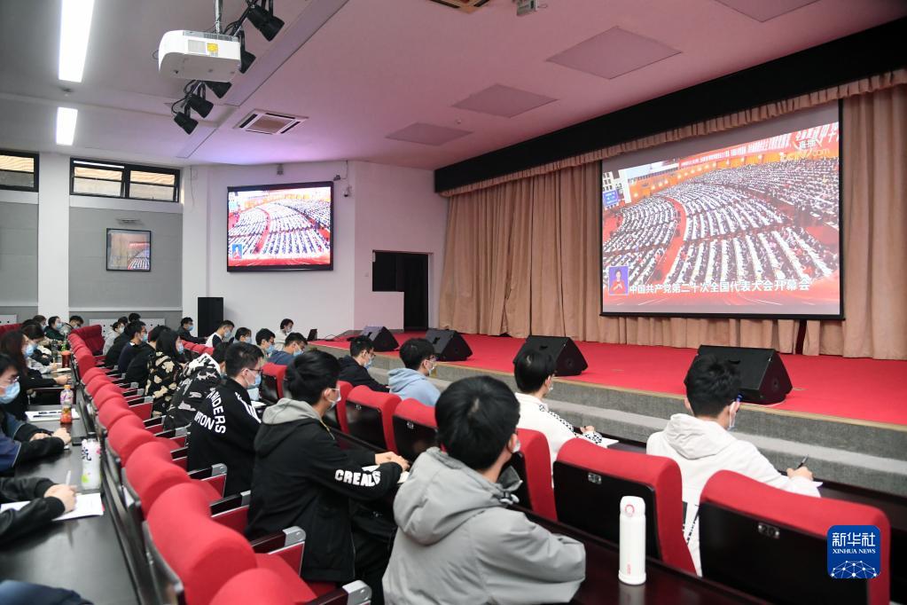 10月16日,在北京交通大學(xué)中心報告廳,學(xué)生收看中國共產(chǎn)黨第二十次全國代表大會(huì )開(kāi)幕會(huì )。
